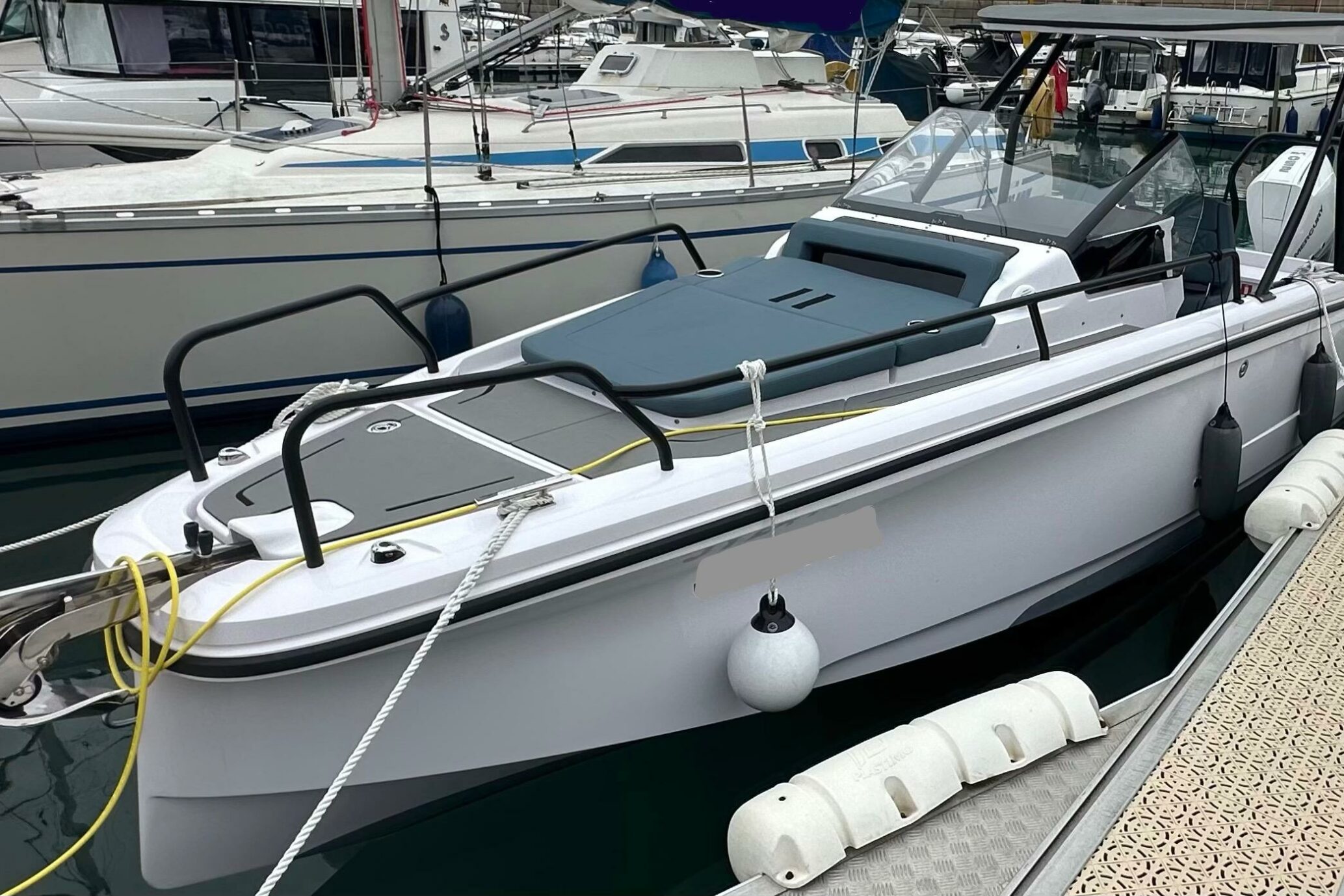 This 2024 Axopar 25 Cross Top is an 8-metre premium sports cruiser that combines Axopar’s sharp, twin-stepped hull performance with practical comfort for day boating and light overnight trips. Featuring a sleek roofed profile with a forward cuddy cabin, it offers seating for up to eight, a small berth for two, and a freshwater toilet, fridge, and aft sunbed. Powered by a 250 hp outboard with very low hours, it reaches speeds up to 45 knots while remaining efficient and stable in choppy conditions. Stylish, agile, and versatile, the 25 Cross Top bridges the gap between open-deck adventure boats and compact weekend cruisers.  This EX VAT boat can be viewed through Quay Boats Ltd in Jersey.