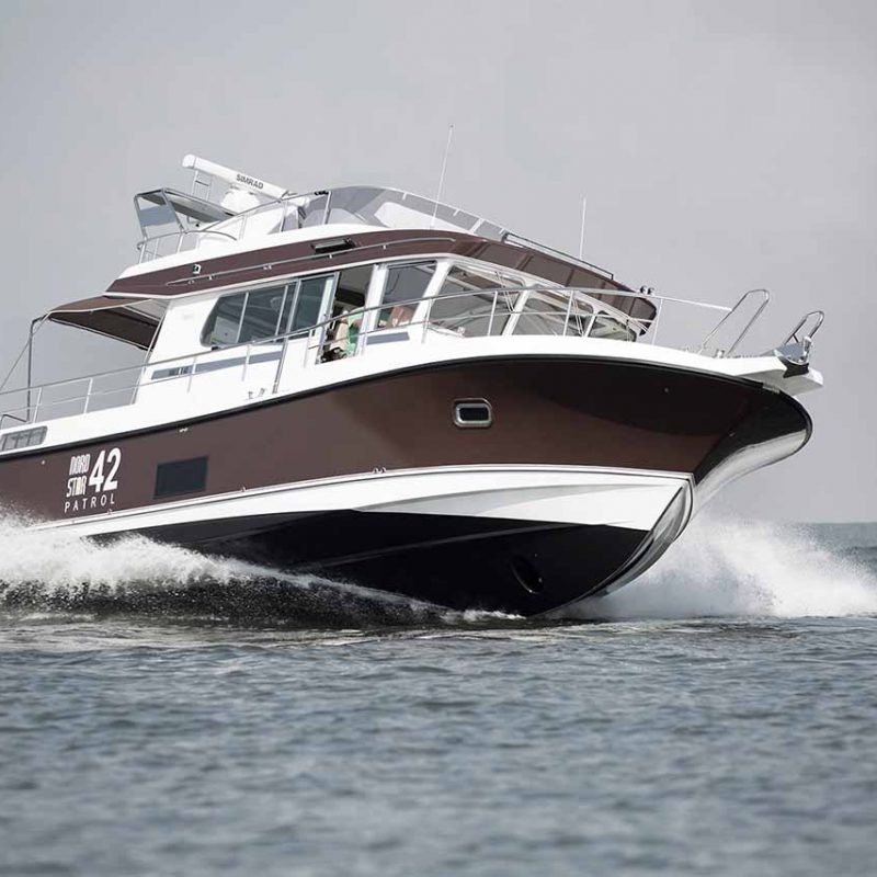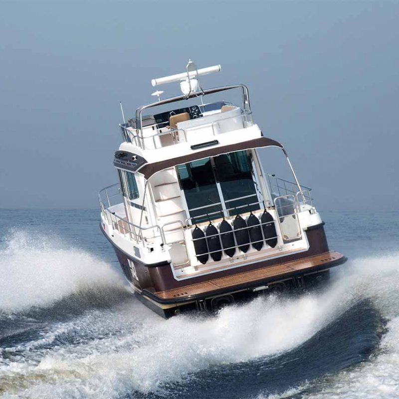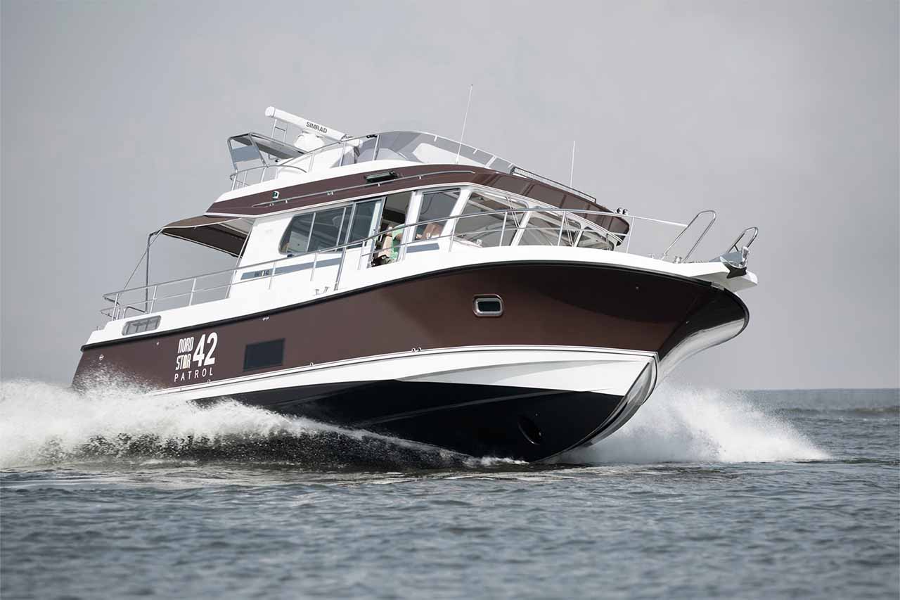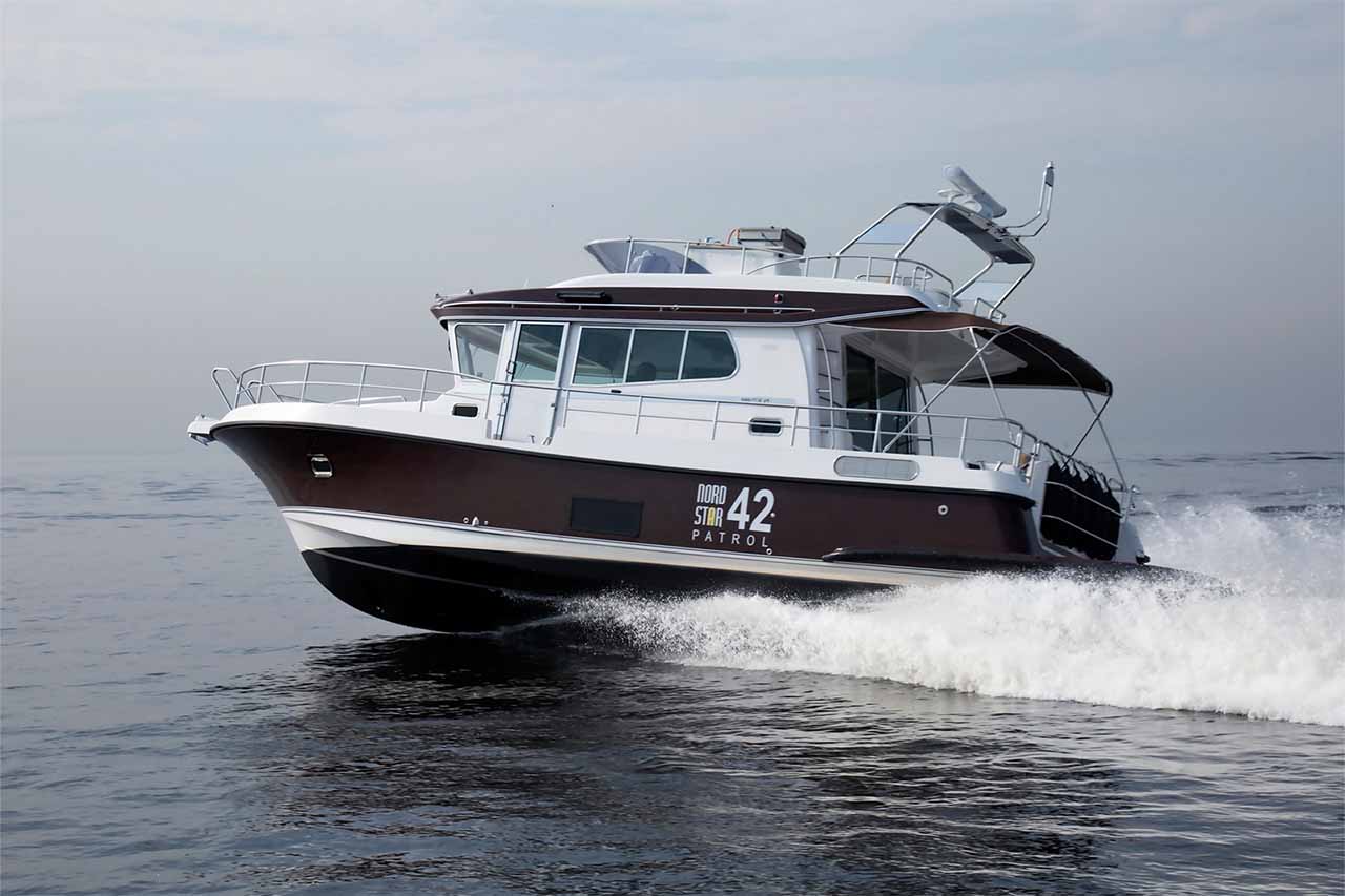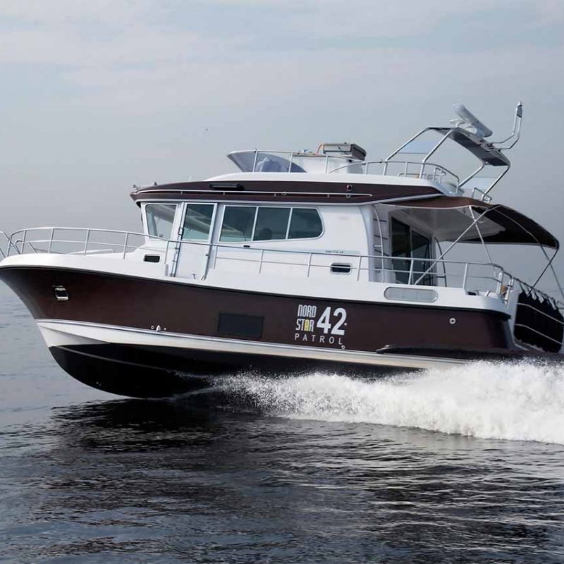 Nord Star boats are manufactured to last for decades in the Nordic climate. Ranging from an 8-meter multi-purpose boat to a 15-meter luxury yacht, all Nord Star models are equipped with an extremely durable hull, luxuriously pampering décor and top-notch ride comfort and safety. What gives the boats their perfection is the boat building heritage that has been passed on from generation to generation. Combined with modern, innovative building methods, the Nord Star is a true voyager of northern seas. Unique structural features maintain stability and comfort in the open seas while premium interior design offers practical luxury for passengers. Each Nord Star boat also has a spacious walk-around deck with three doors, which makes walking through the deck always safe and hassle-free.