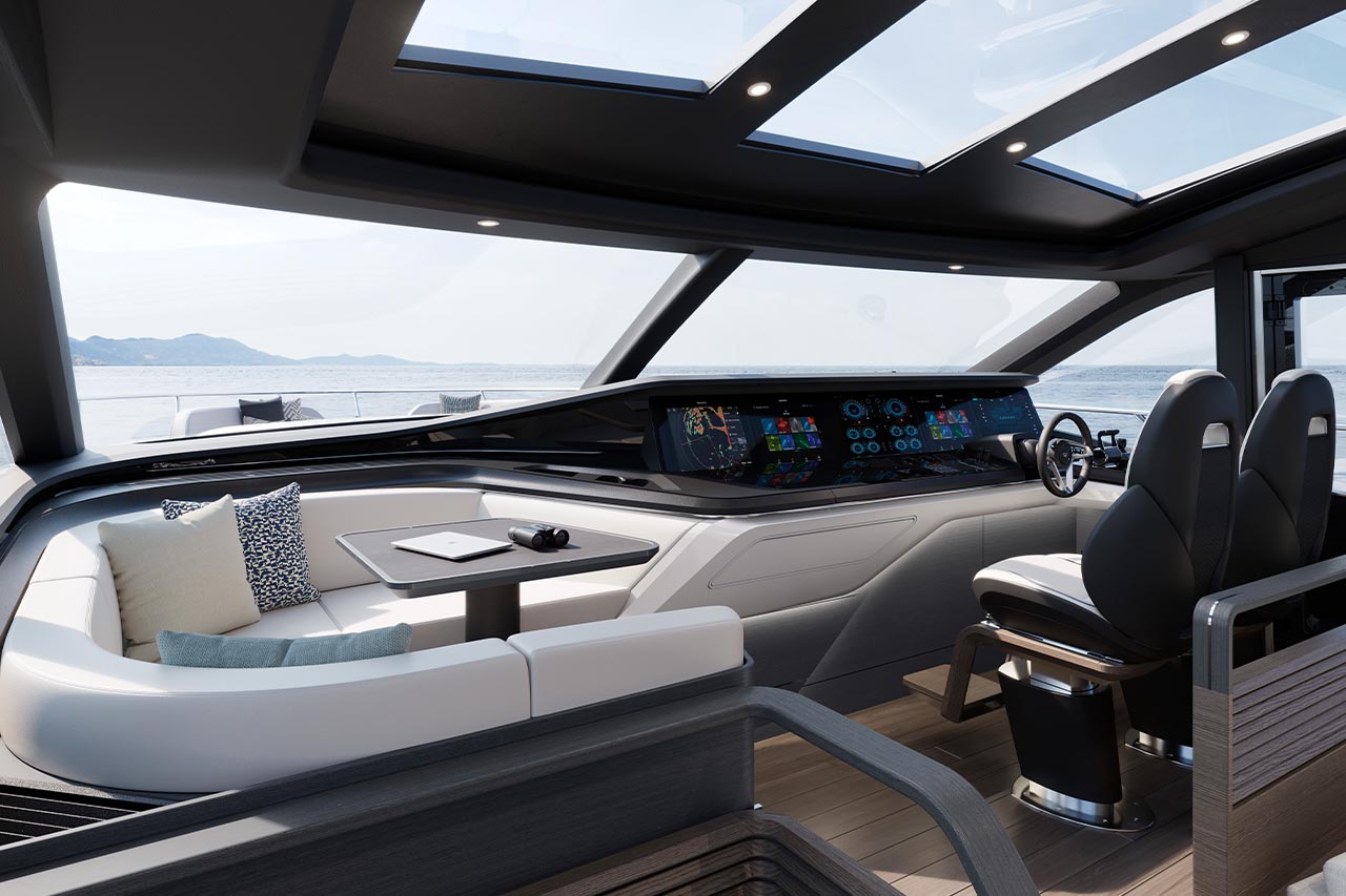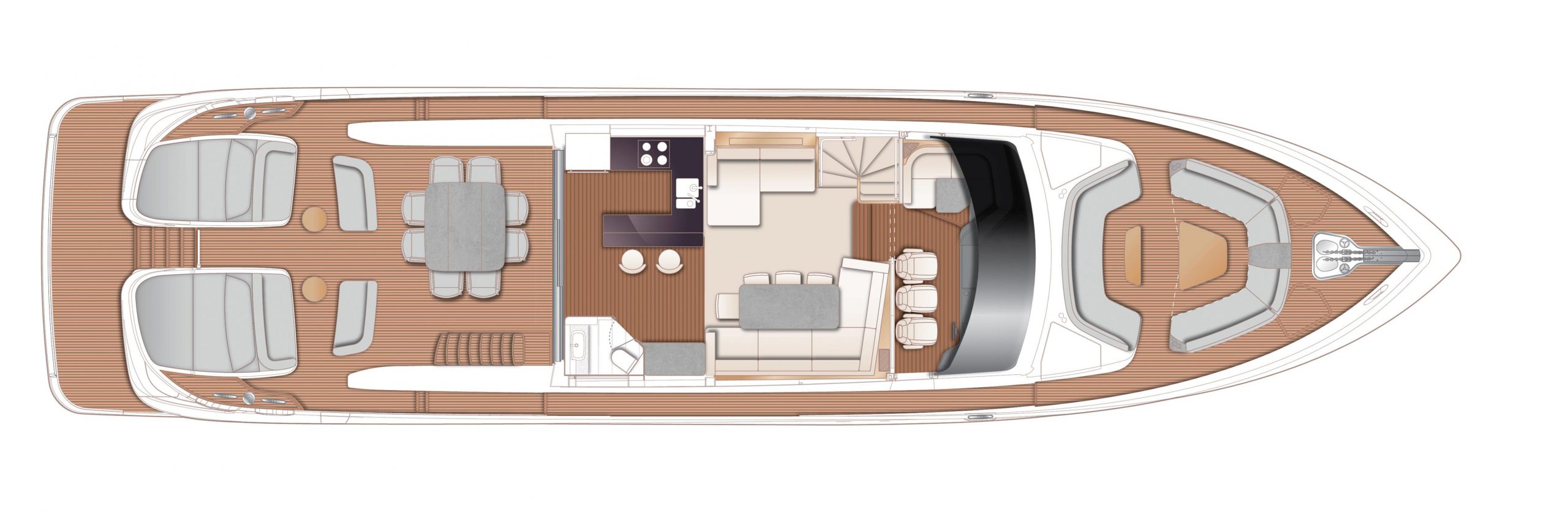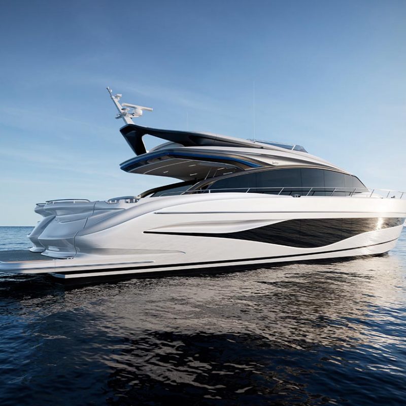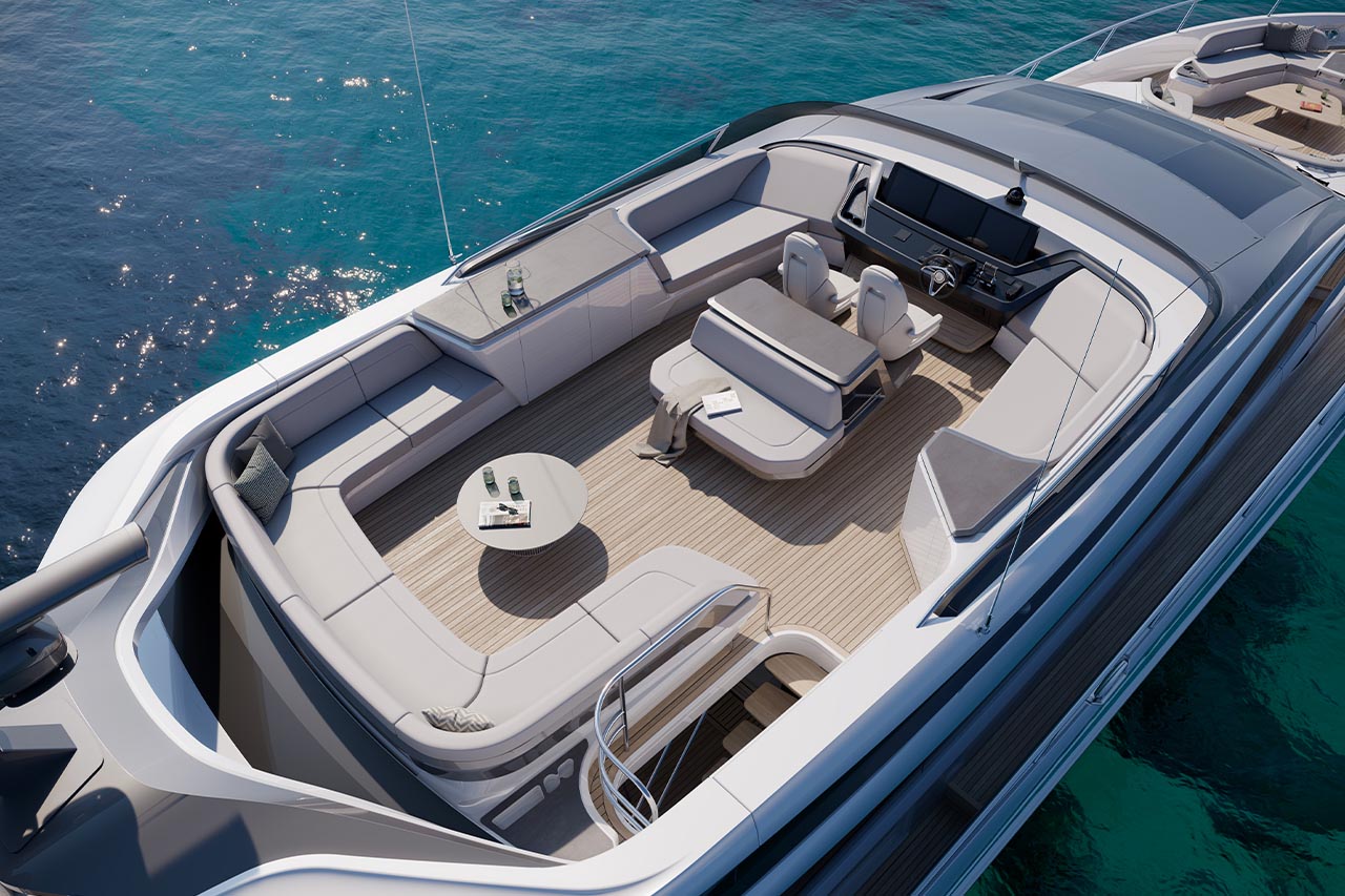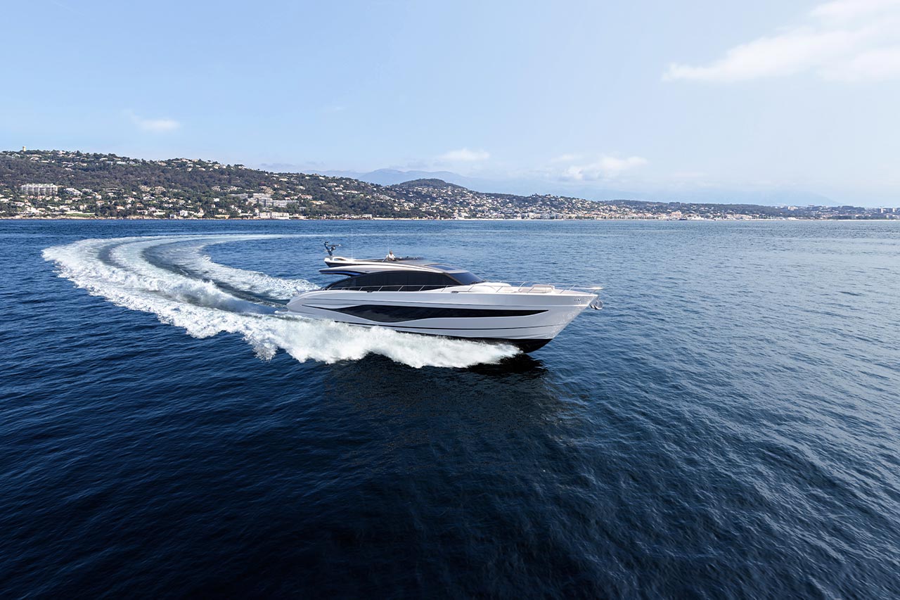High bulwarks complete with oval stainless-steel rails, a vast teak laid deck, and tailored natural materials define the flagship status of this new S Class model, blending luxurious and contemporary finishes in perfect harmony.The latest edition to the S Class sportbridge range, the all-new Princess S80. Featuring Princess’ latest sweeping design language, the S80 is designed in collaboration with naval architects Olesinski and Italian design house, Pininfarina. The versatile layout of the all-new S80 allows her to be managed as an owner operated vessel with a vast open saloon and raised helm or discreetly crewed, with the option of an enclosed helm plus crew accommodation for up to 3.