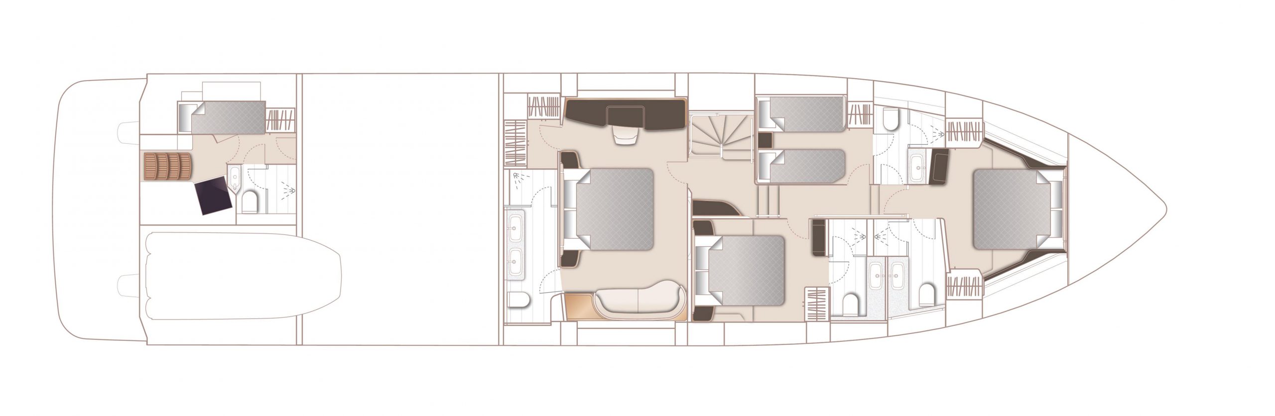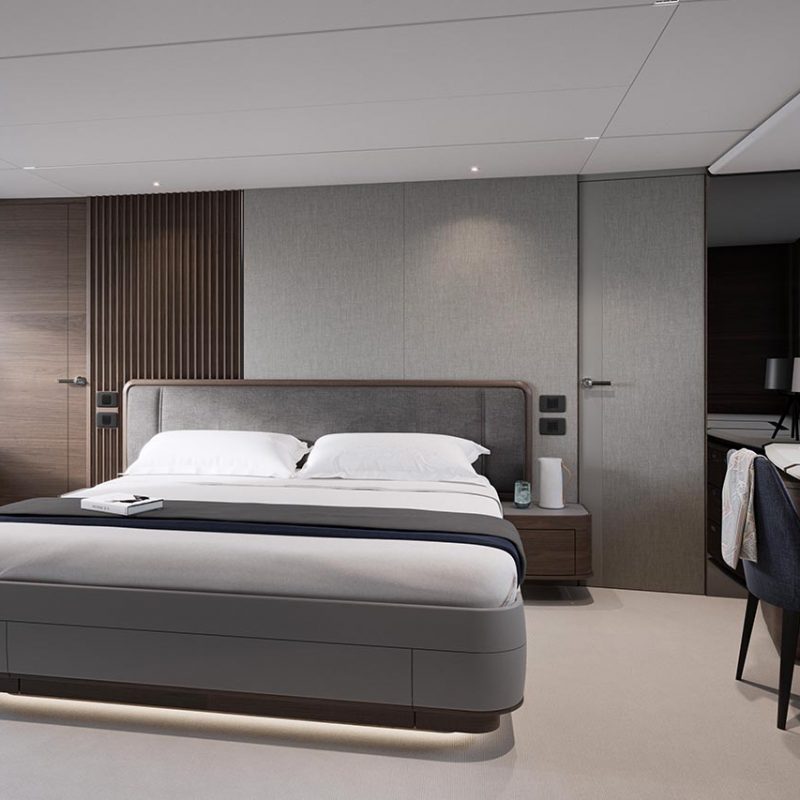 Experience traditional craftsmanship reinvented throughout her integrated interior. Ambient lighting plays a supporting role behind furniture, feature panels and through flooring. A cavernous main deck saloon seamlessly connects you to the world outside through full length side windows.Detail