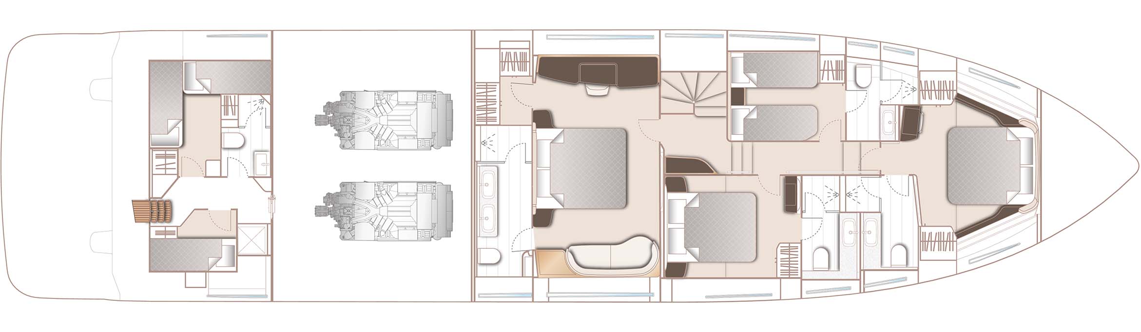 The versatility of the Y80 sets it apart from its contemporaries. Offering a generous beam, the Y80 provides significant volume for an 80-foot motor yacht whilst retaining elegant styling and design both inside and out.