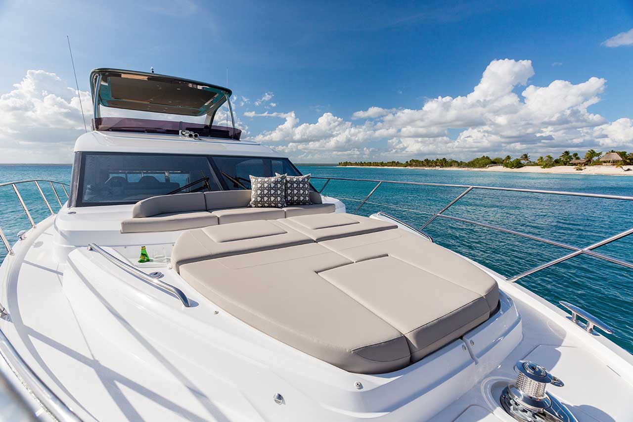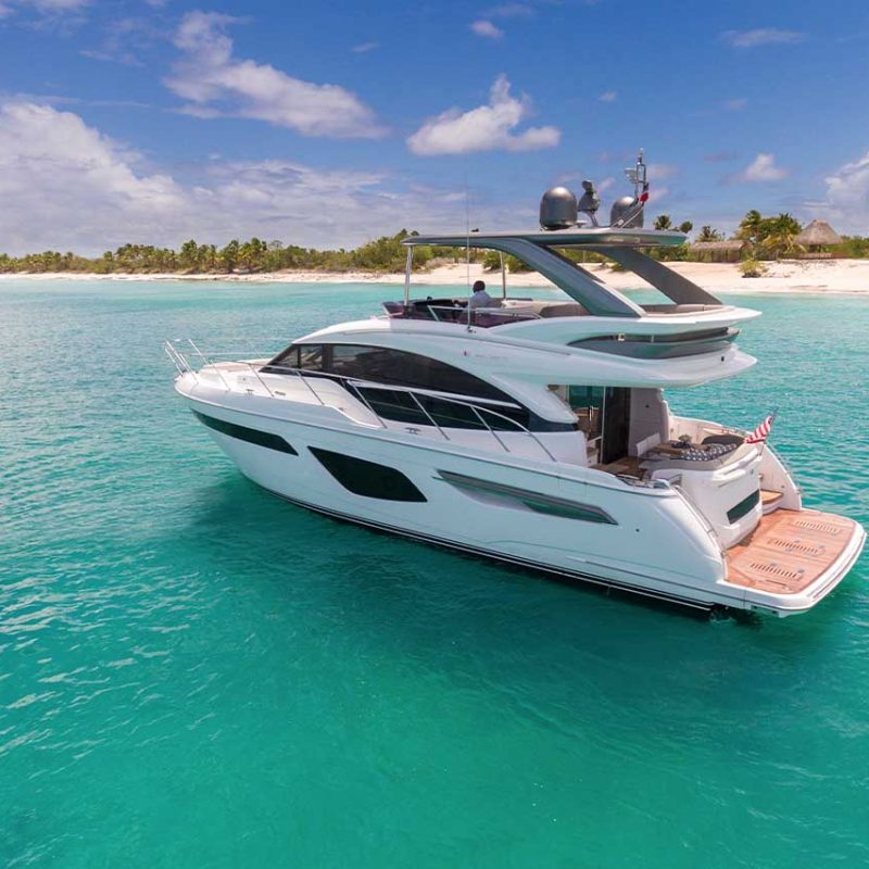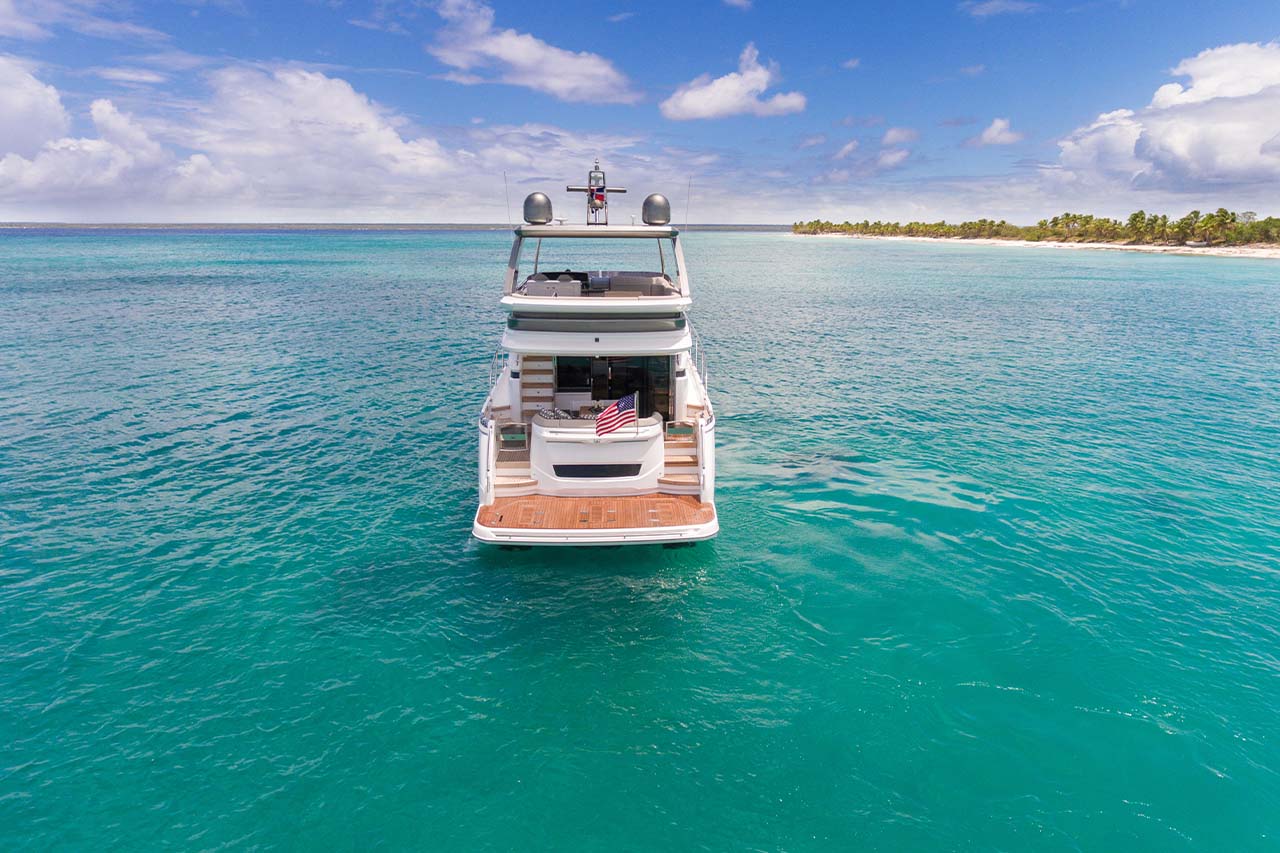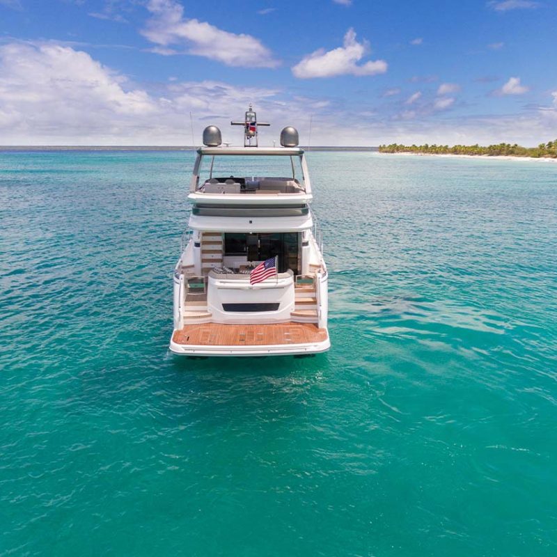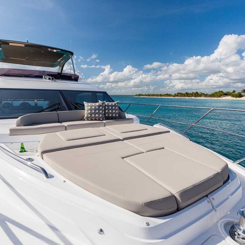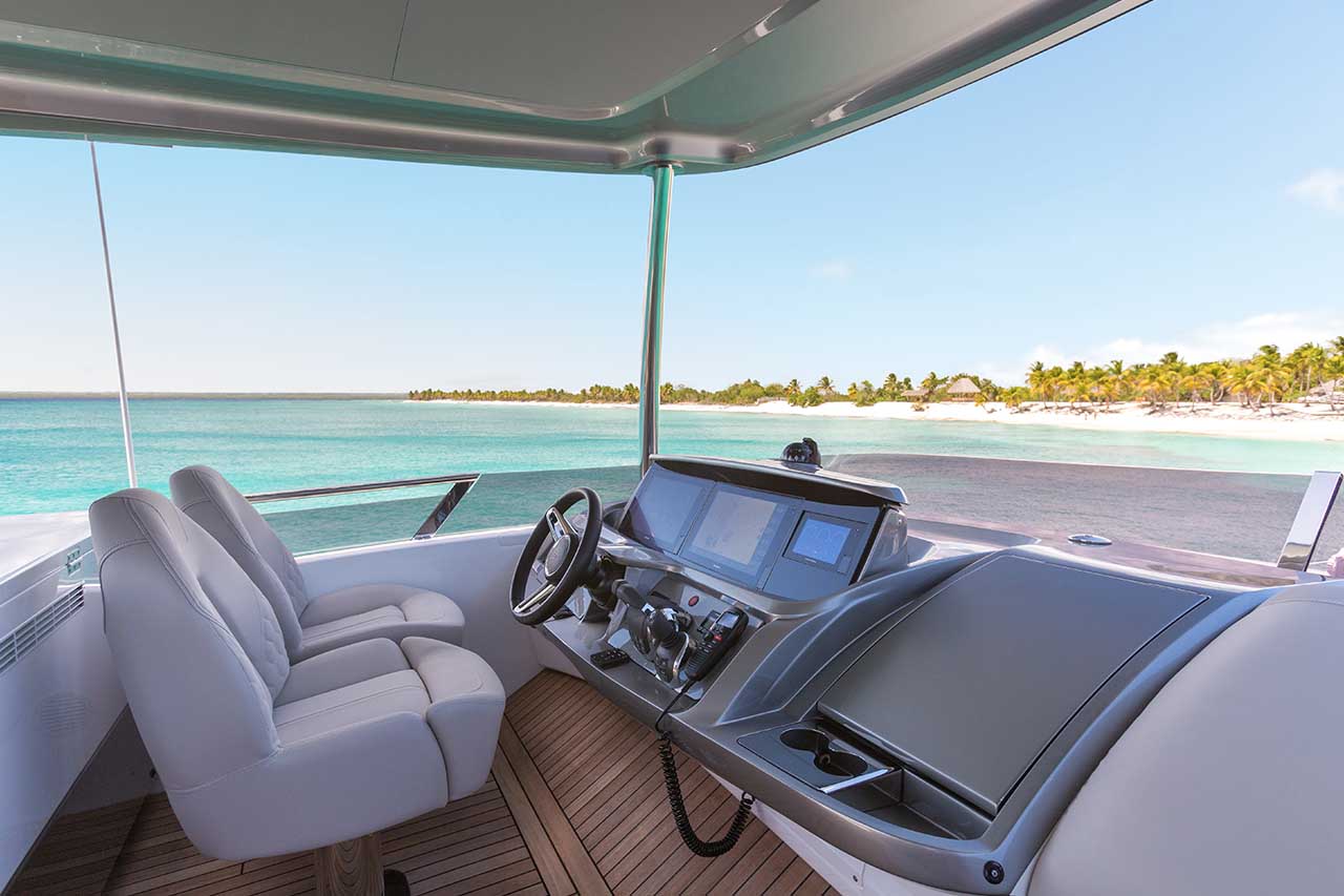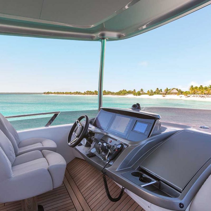The award-winning Princess F55's 17.80m2 flybridge enjoys a convertible sunbed, twin helm seats, a wetbar and ergonomic dining areas. Vast panoramic saloon windows and signature wrap around front screens offer uninterrupted vistas from the main deck whilst expansive hull windows generously flood her accommodation areas with light.ELEGANCE