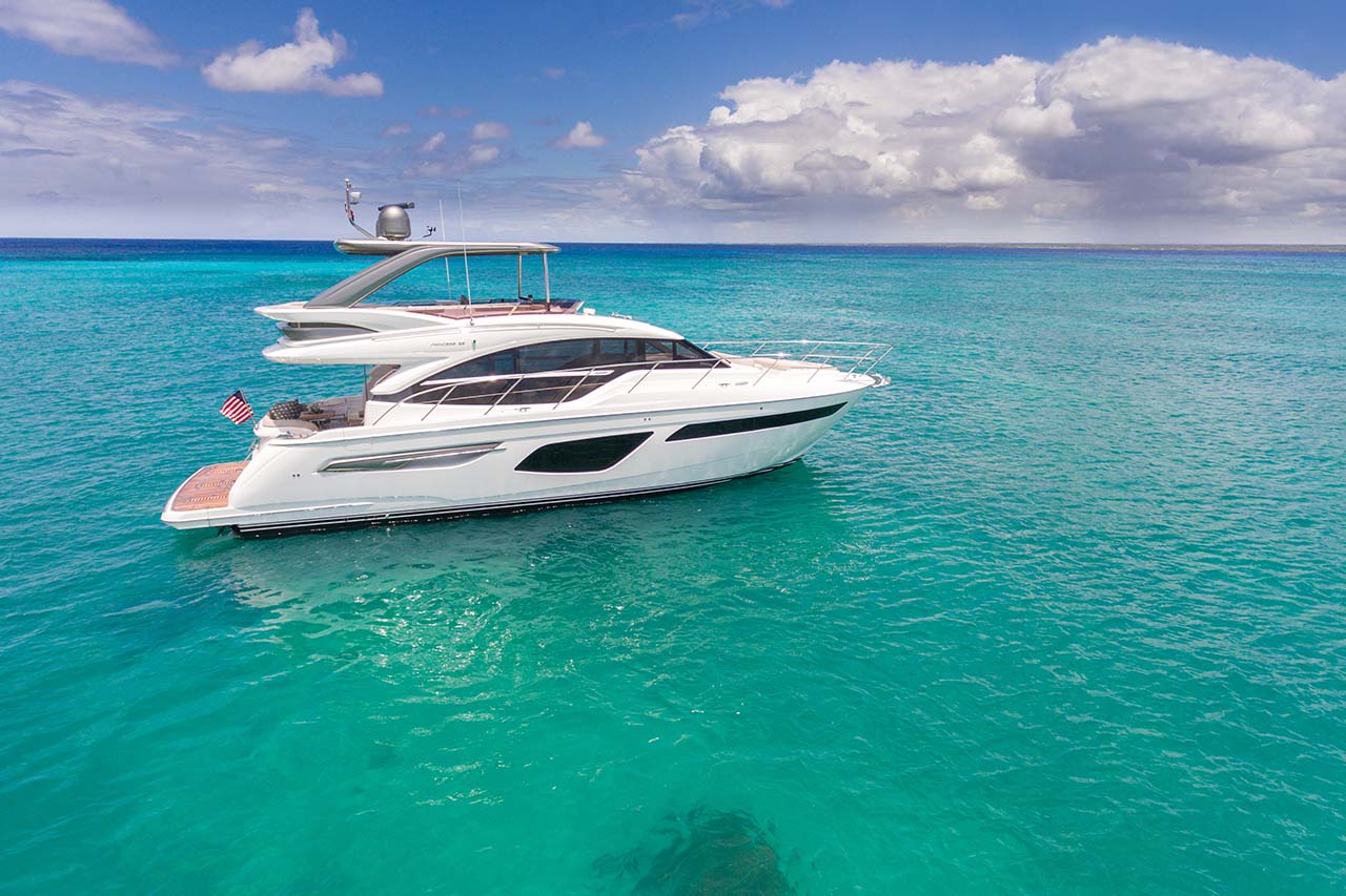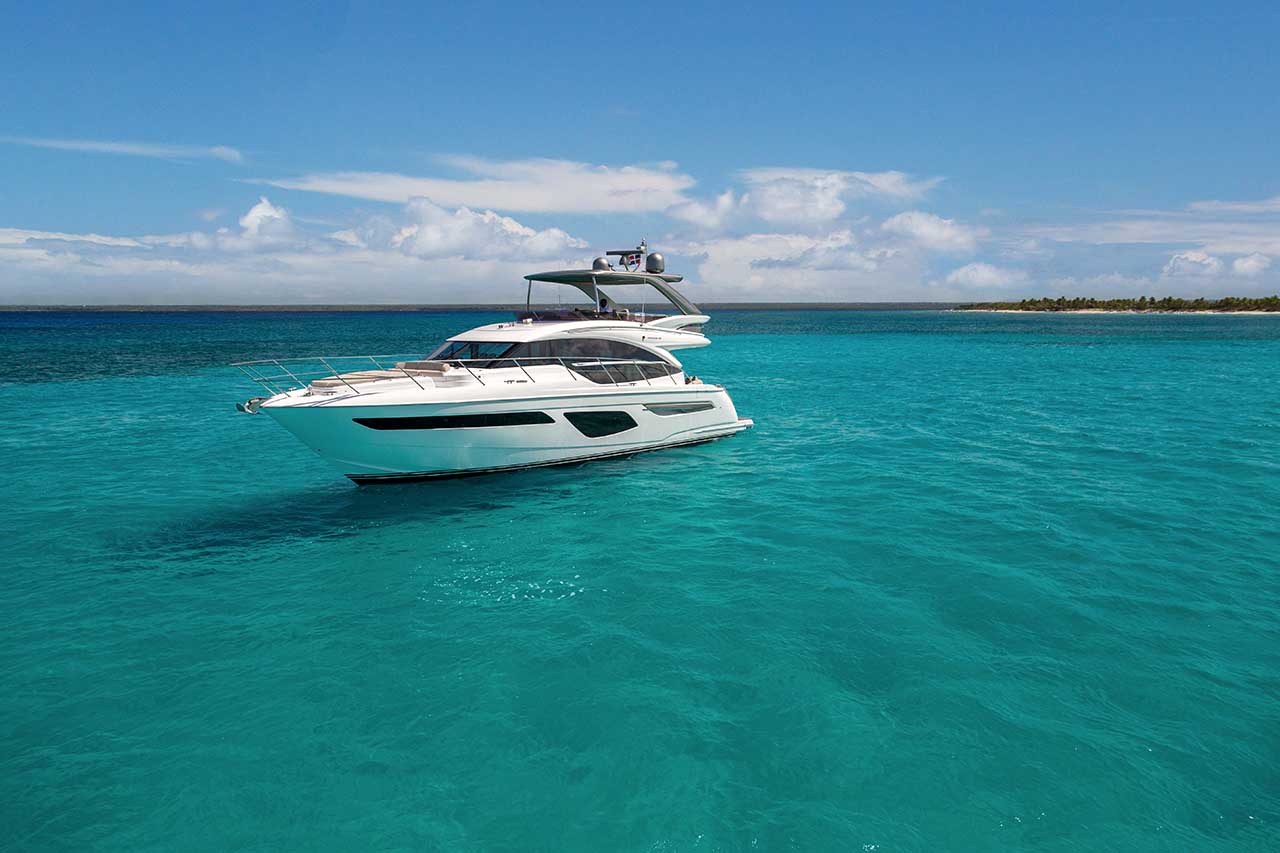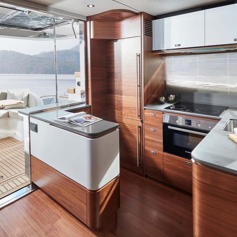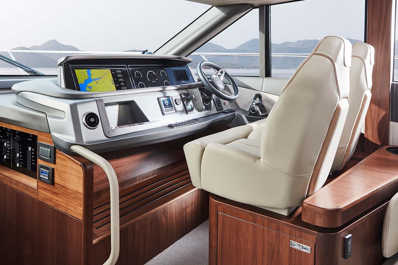 The F55 interior has an architectural presence and elegantly uses contrasting surfaces whilst retaining the elegance that Princess interiors are renowned for.PERFORMANCE