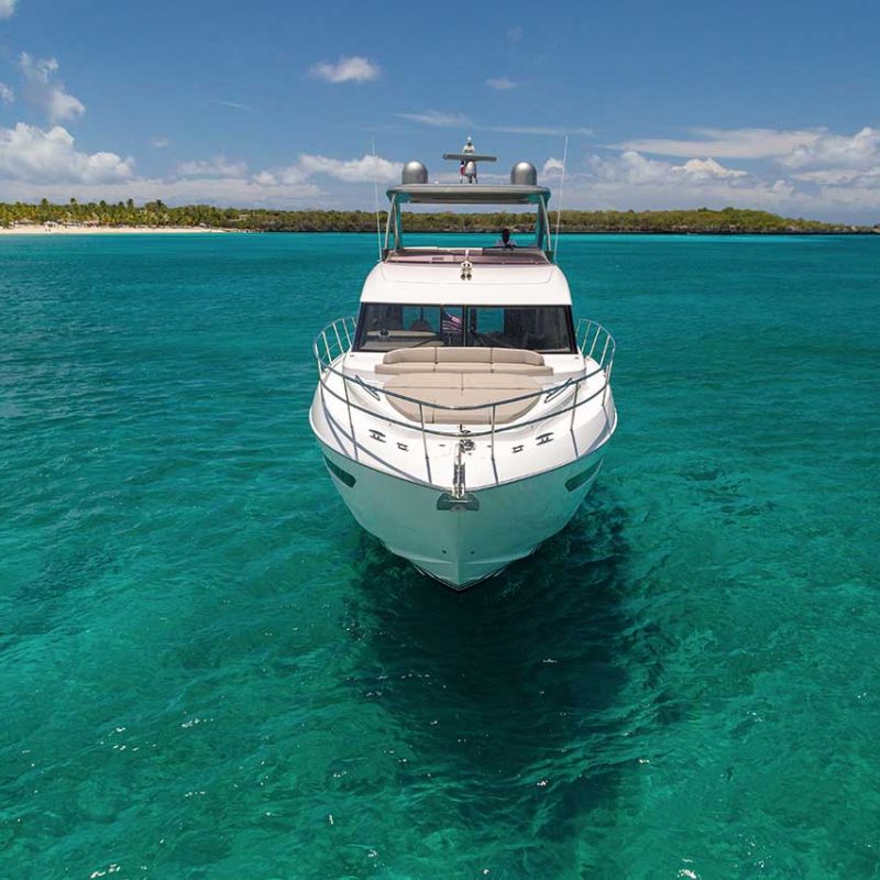 The F55 interior has an architectural presence and elegantly uses contrasting surfaces whilst retaining the elegance that Princess interiors are renowned for. Her spacious saloon features a U-shaped sofa opposite a twin sofa with the option of a folding leaf dining or coffee table in between. Below, both the master stateroom and forward cabin feature large double beds whilst the starboard guest cabin with two single beds can also be converted into a double. There is also the option for a single bed aft cabin.This oasis of calm can then be propelled to a top speed approaching 33 knots, and all with nimble composure. Magnificent performance and uncompromising comfort in equal measure.