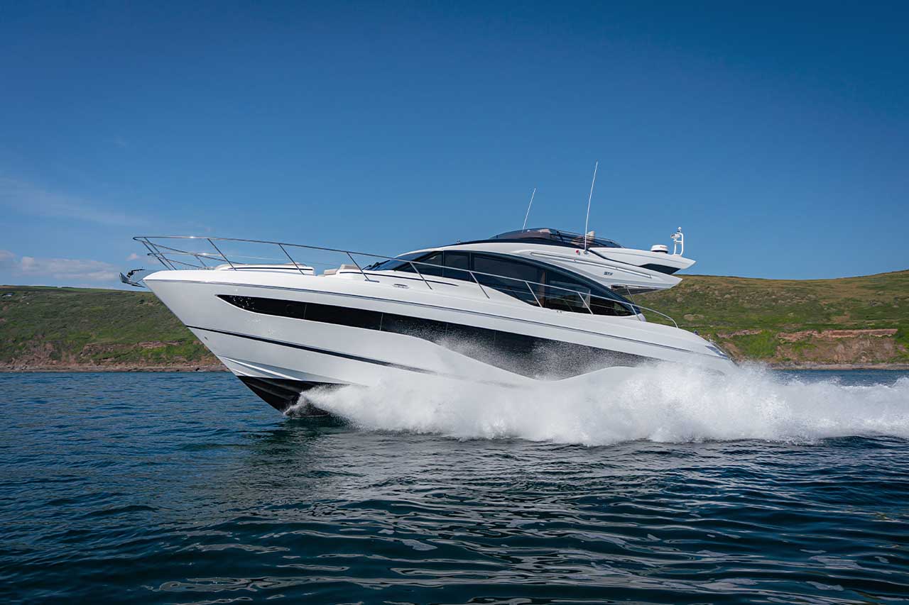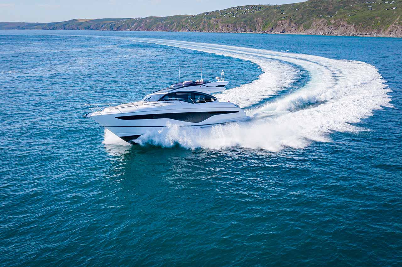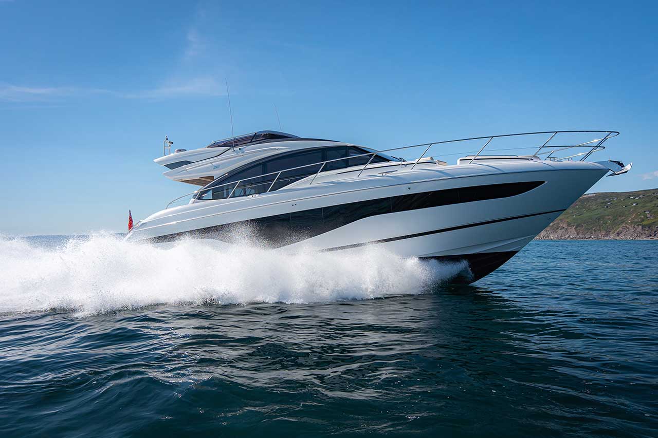 The S62 from Princess offers a dynamic and agile stance, with an optimised hull form spearheading her efficiency.POWERFUL