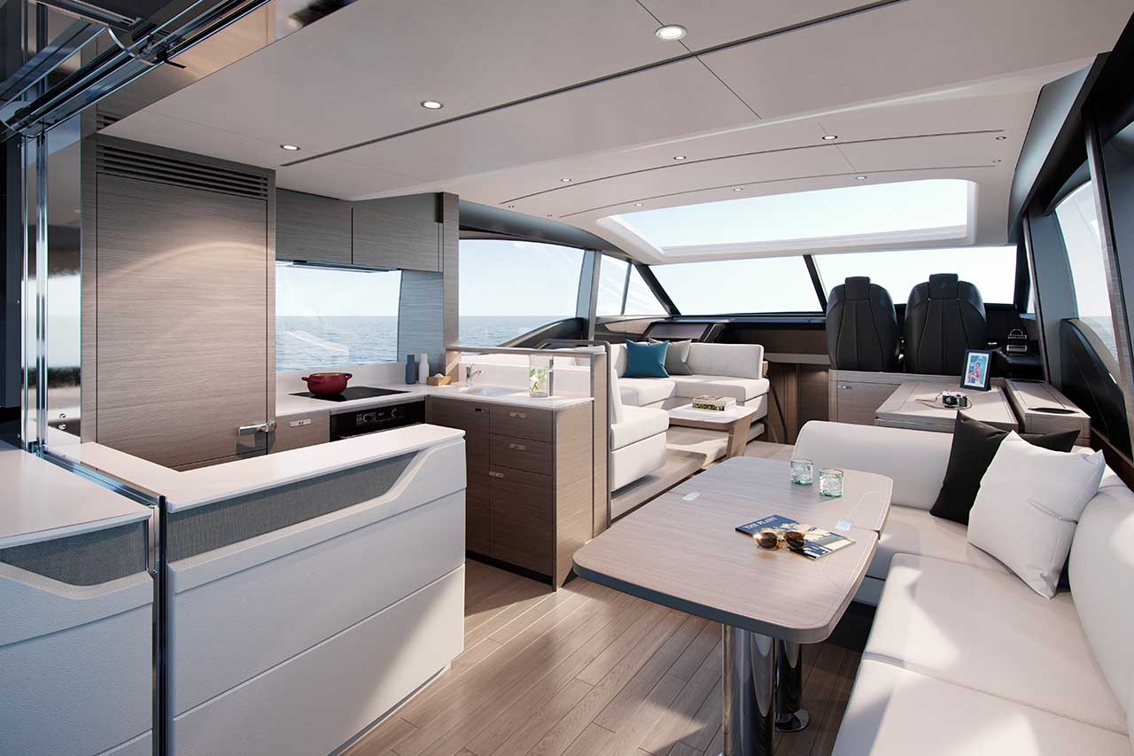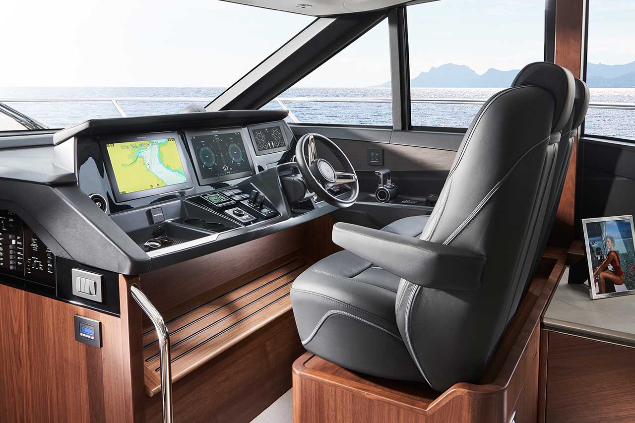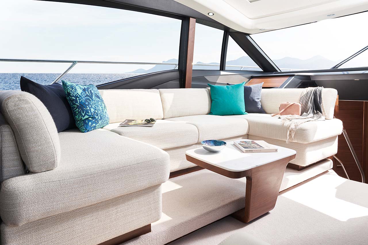 The S62 from Princess offers a dynamic and agile stance, with an optimised hull form spearheading her efficiency.POWERFUL