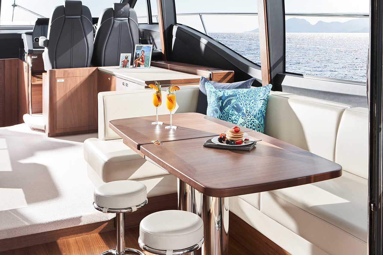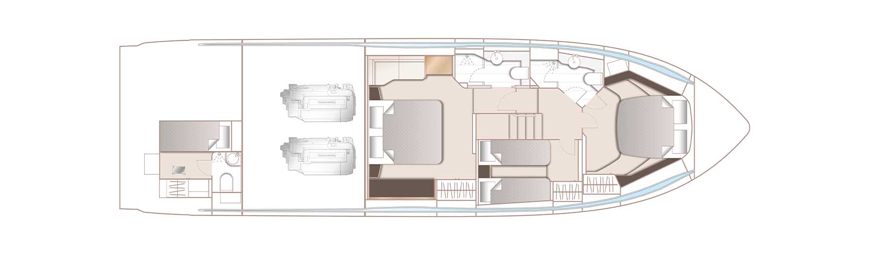 Powerful yet elegant, the new S62's sleek exterior styling presents a dynamic, agile stance. With an optimised hull form spearheading her efficiency, her MAN V8 1200 engines mean you can experience speeds up to 38 knots.ELEGANCE