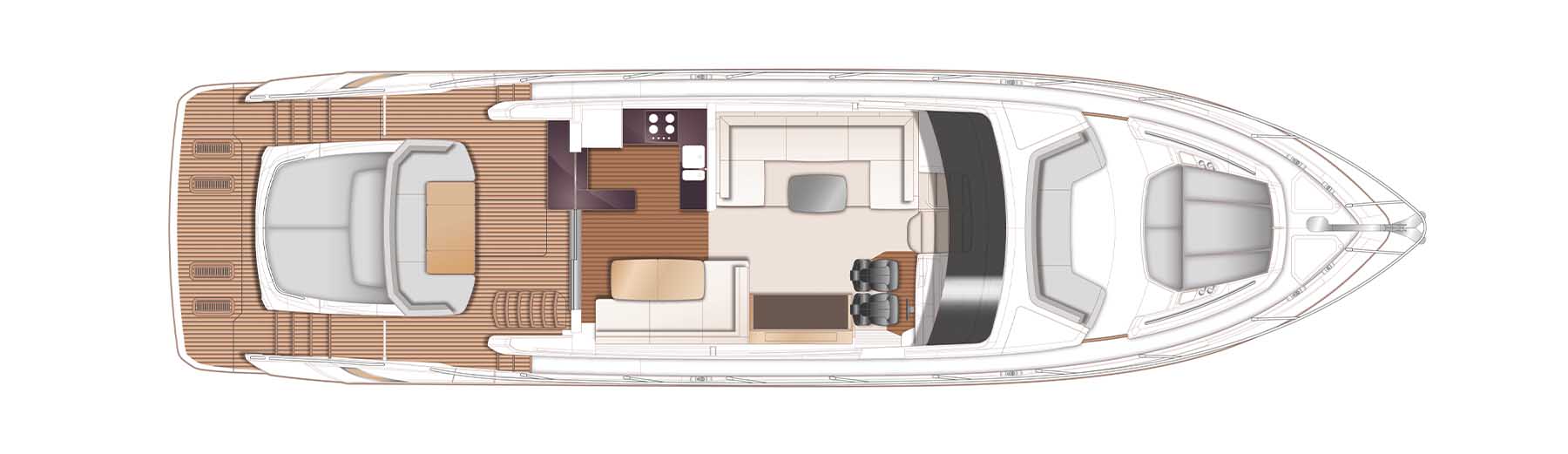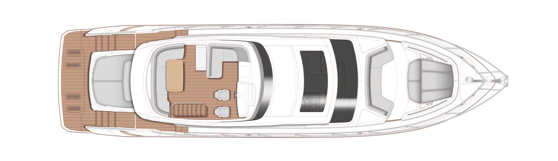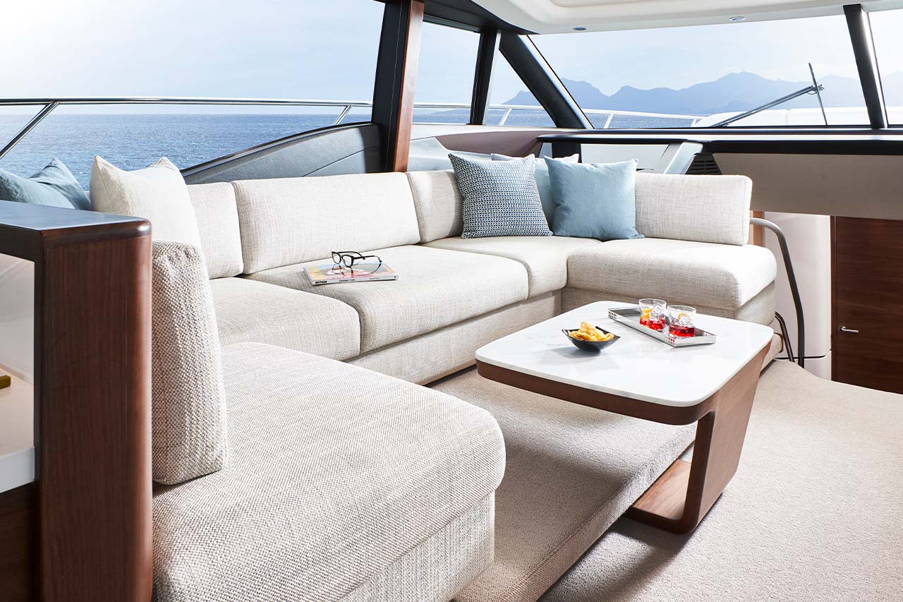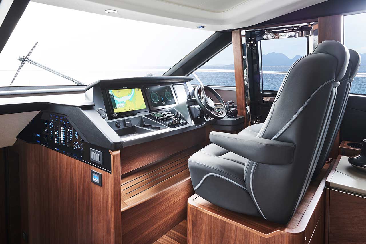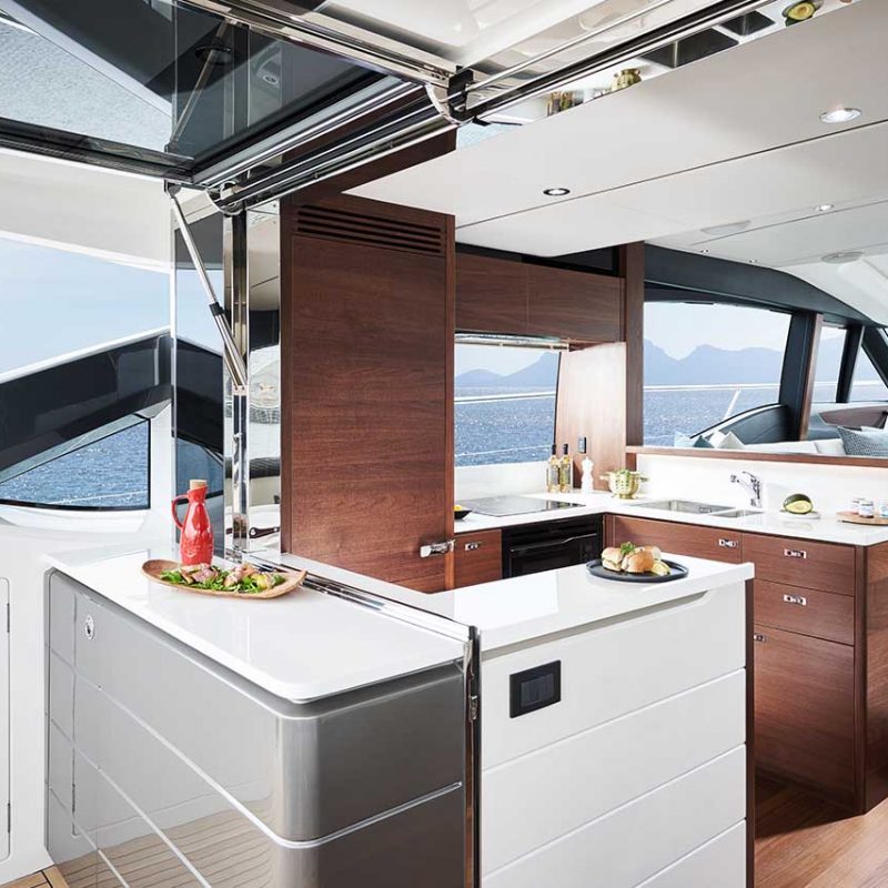 Experience her sociable galley aft arrangement, with opposing open-plan dining area, has sliding doors and a fully opening electric window leading out to the cockpit to create an al fresco bar. Below deck eight guests are accommodated across four cabins, three of which are en-suite.Launched in Autumn 2019, the new Princess S66 is an upgrade of the much-loved S65. Her slender streamlined form and lightweight deep-V hull delivers a breathtaking experience whilst providing ample space below and on deck.