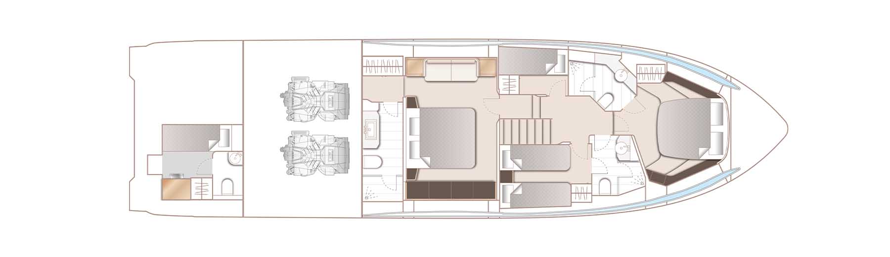There’s an undeniable presence about the all-new Princess S66, with her slender streamlined form that somehow also exudes a predatory air. A lightweight deep-V hull delivers on this promise with breathtaking agility up to 38 knots.PEACEFUL
