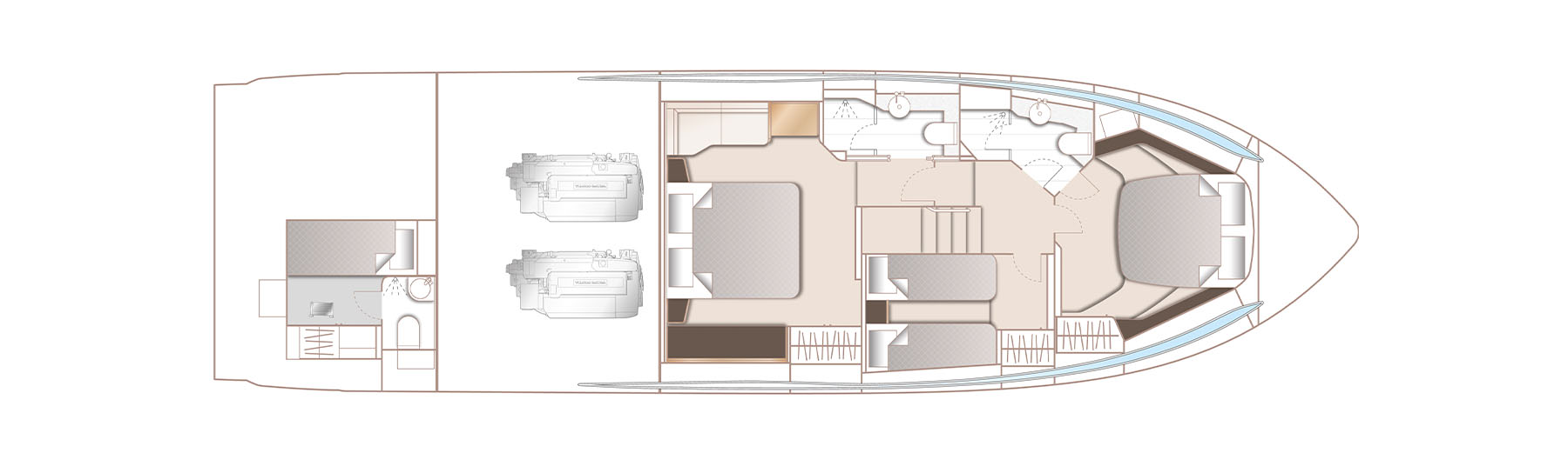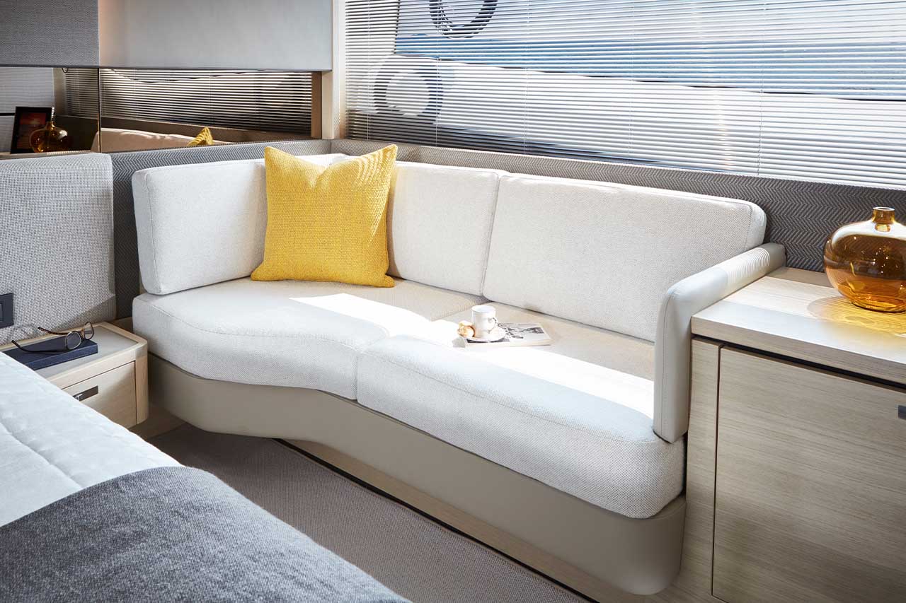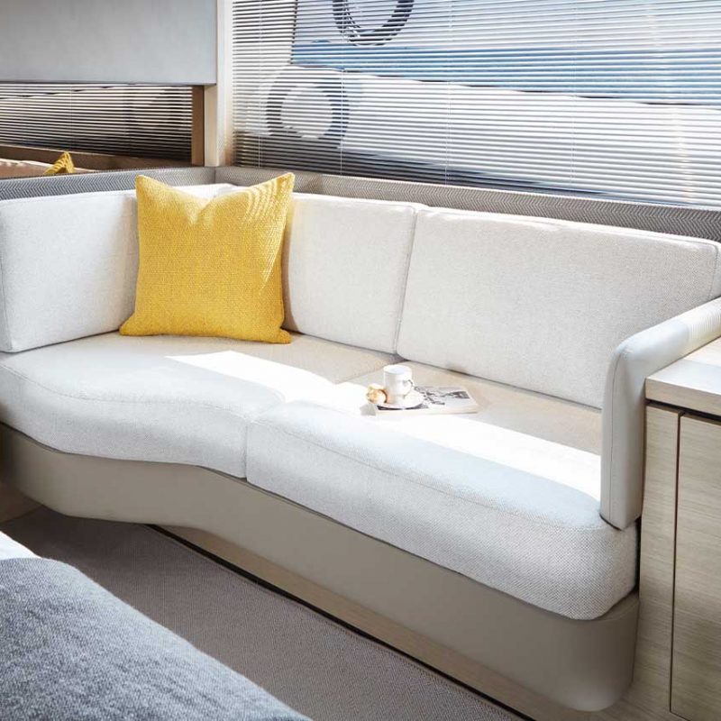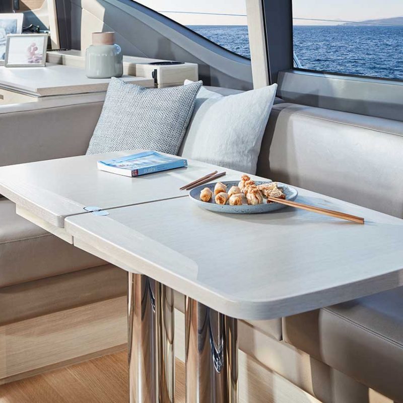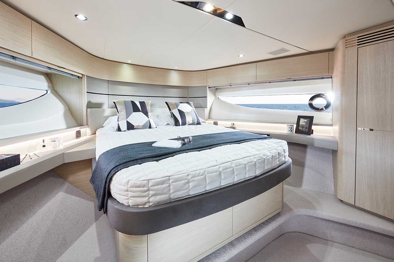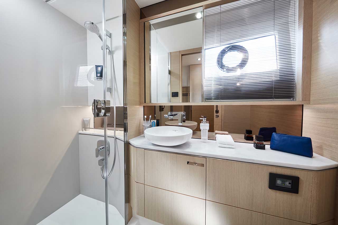 The elegant lines of the V60 encapsulate an expansive and sociable cockpit arrangement with a generous seating area and fully equipped wetbar with barbecue. Below deck, six guests are comfortably accommodated across an en suite full-beam owner’s stateroom and two further guest cabins with the option of an additional crew cabin.