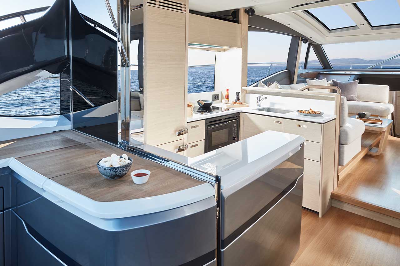 The elegant lines of the V60 encapsulate an expansive and sociable cockpit arrangement with a generous seating area and fully equipped wetbar with barbecue.