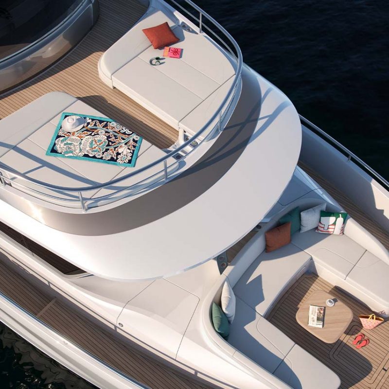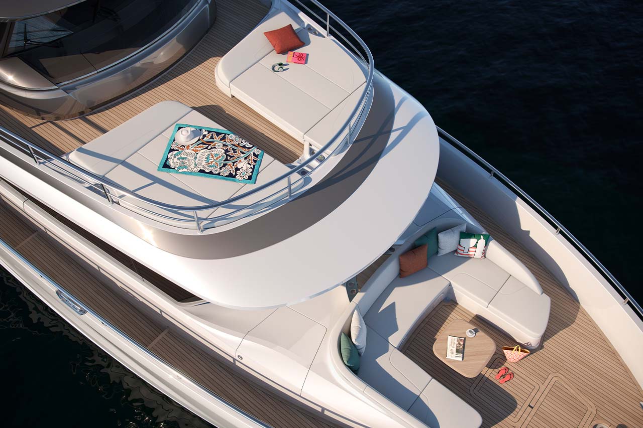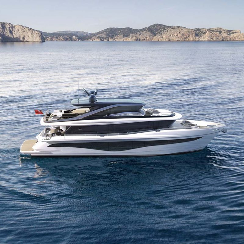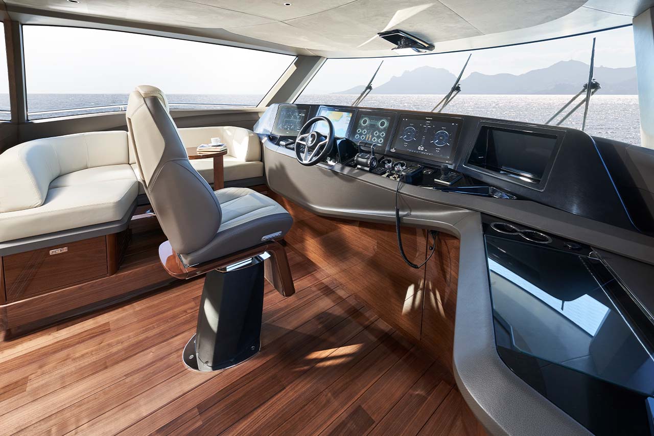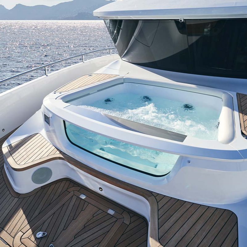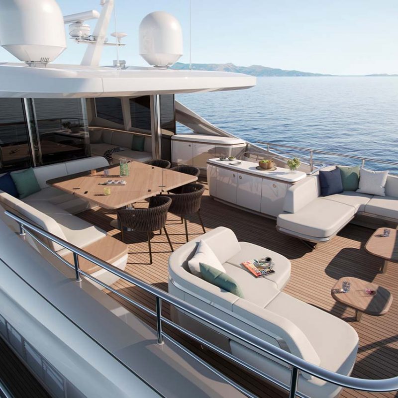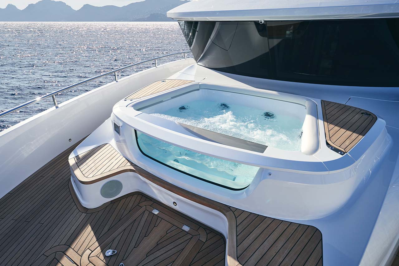 The X80 brings the outside in through the maximisation of glazing which flows along the entire length of the main deck encasing the saloon, galley and forward dining area.