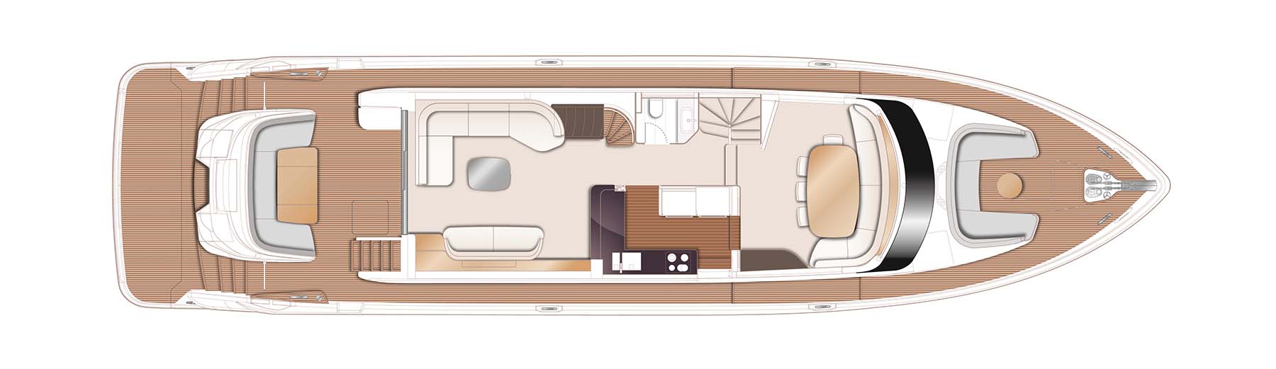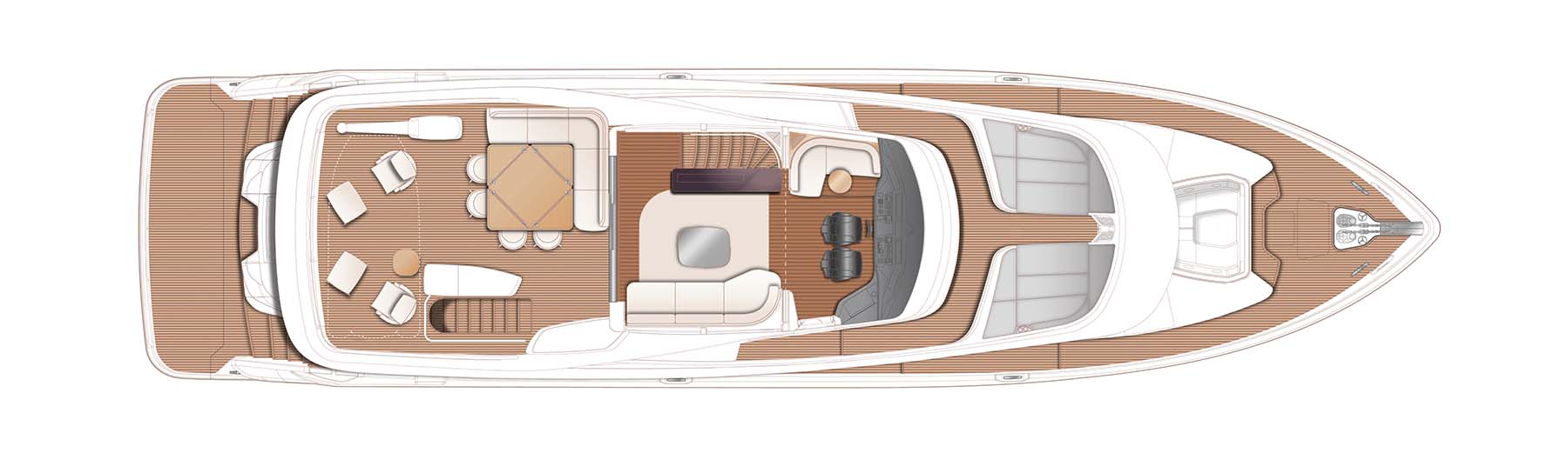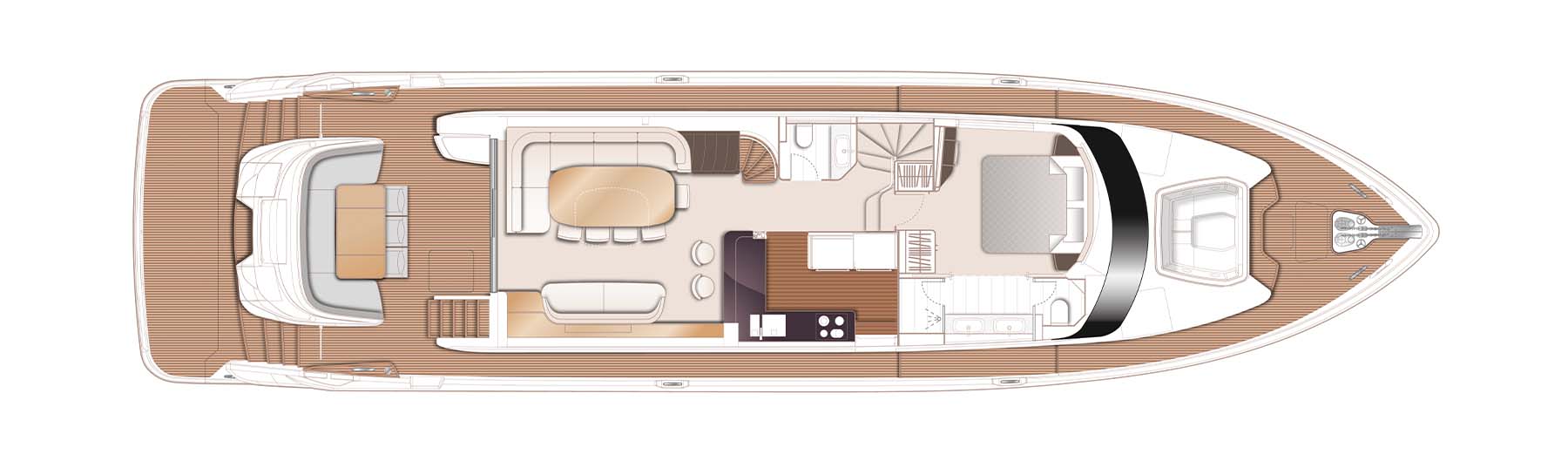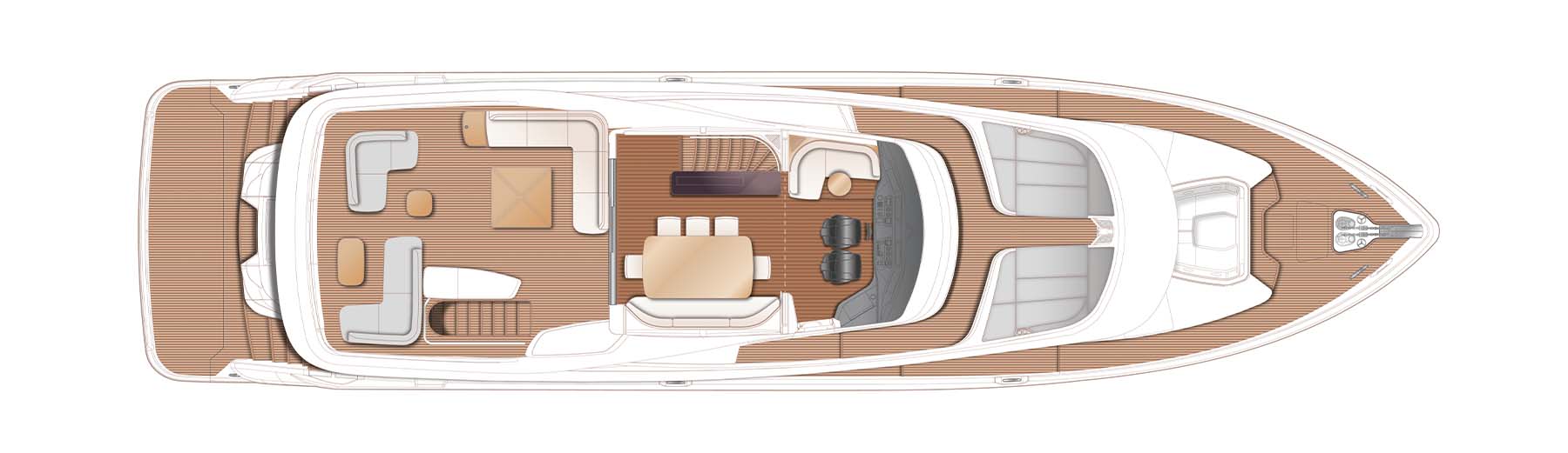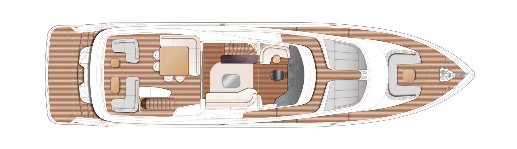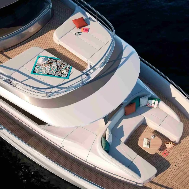 The X80 brings the outside in through the maximisation of glazing which flows along the entire length of the main deck encasing the saloon, galley and forward dining area.