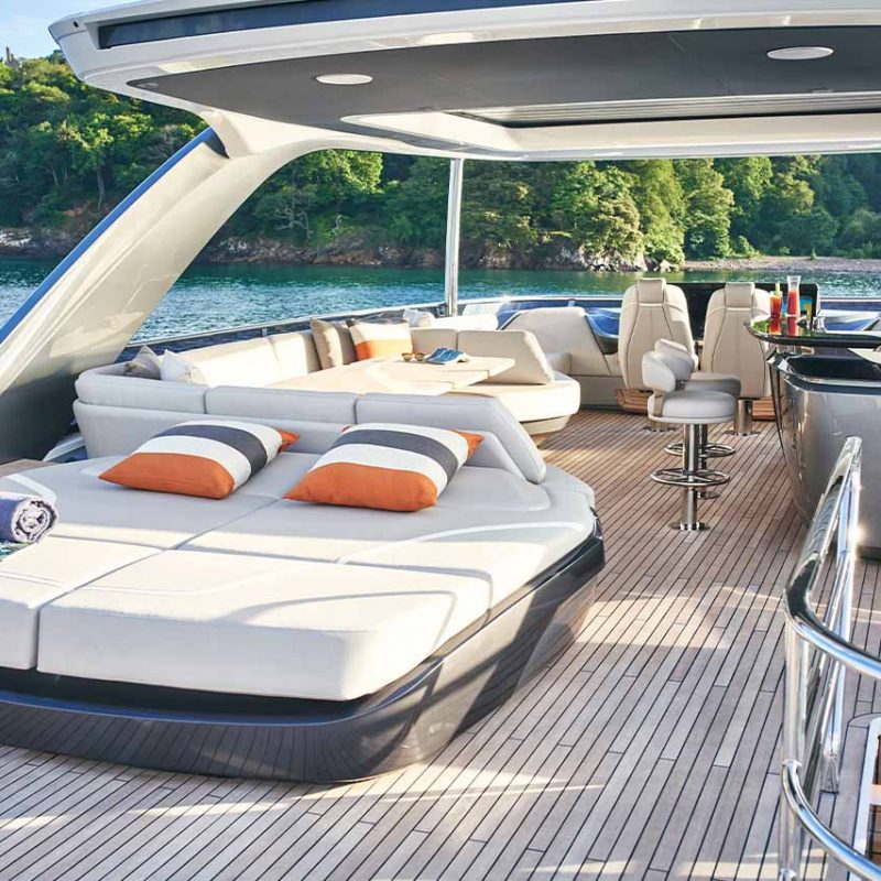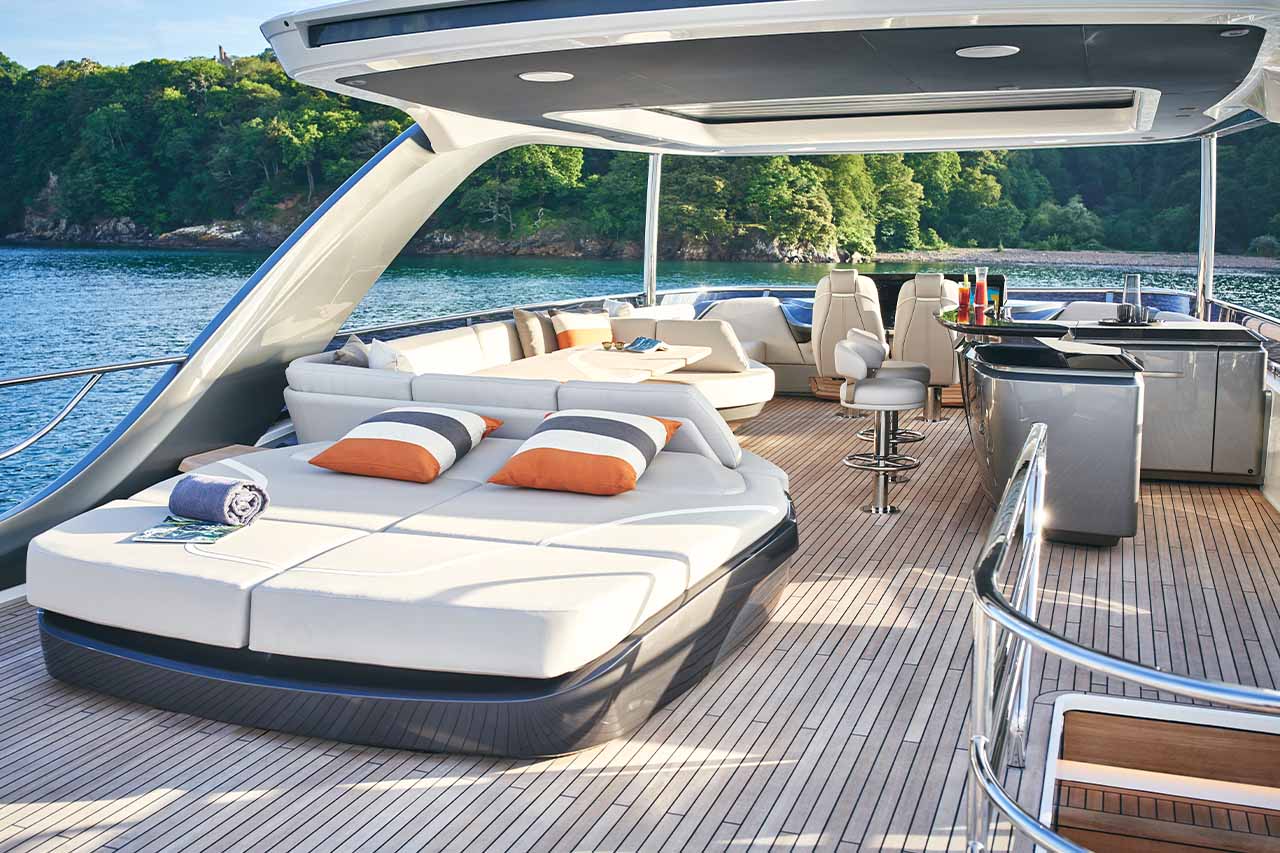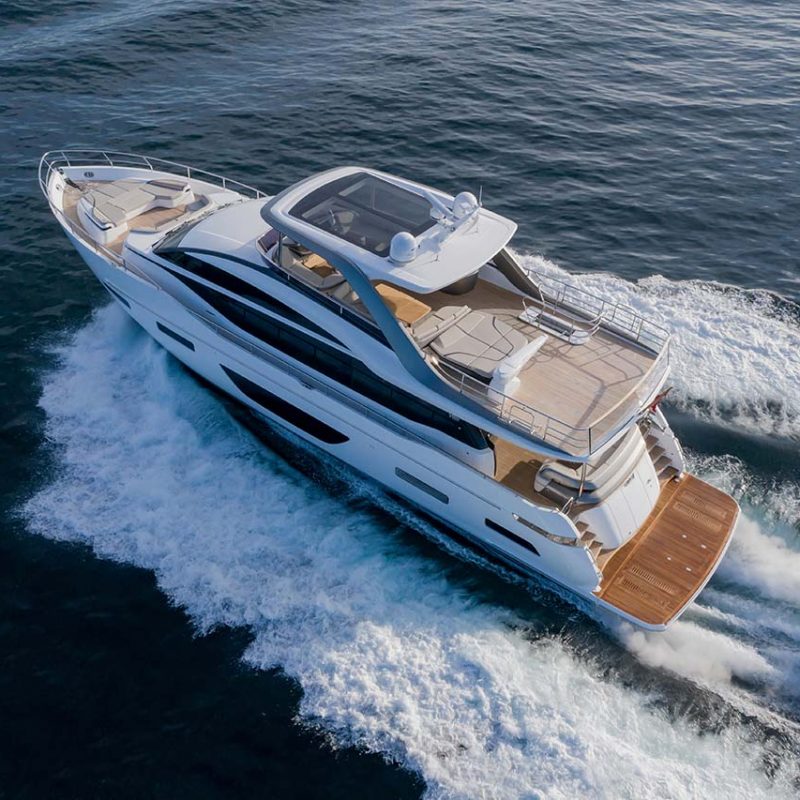 Her flybridge is an irresistible invitation to al fresco entertainment with a large dining area opposite a well-equipped wet bar and large aft sunpad. Below deck, up to eight guests are accommodated across four beautifully appointed en suite cabins. Amidships, the full beam master suite is a champion of spacial design, whilst the en suite VIP cabin, forward, boasts a large double bed and walk-in wardrobe.Unmissable, the all-new Y85 is unmistakably Princess. Her elegant sweeping profile houses an interior sanctuary that resets the benchmark for modern living and at her top speed of
