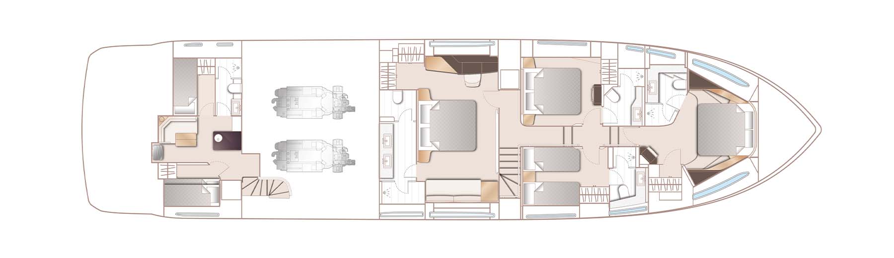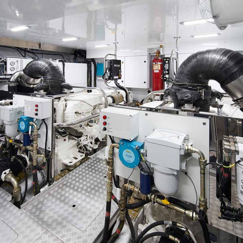 With twin MAN V12 engines propelling her to a top speed of 33 knots, she flies past her contemporaries without looking back.elegance